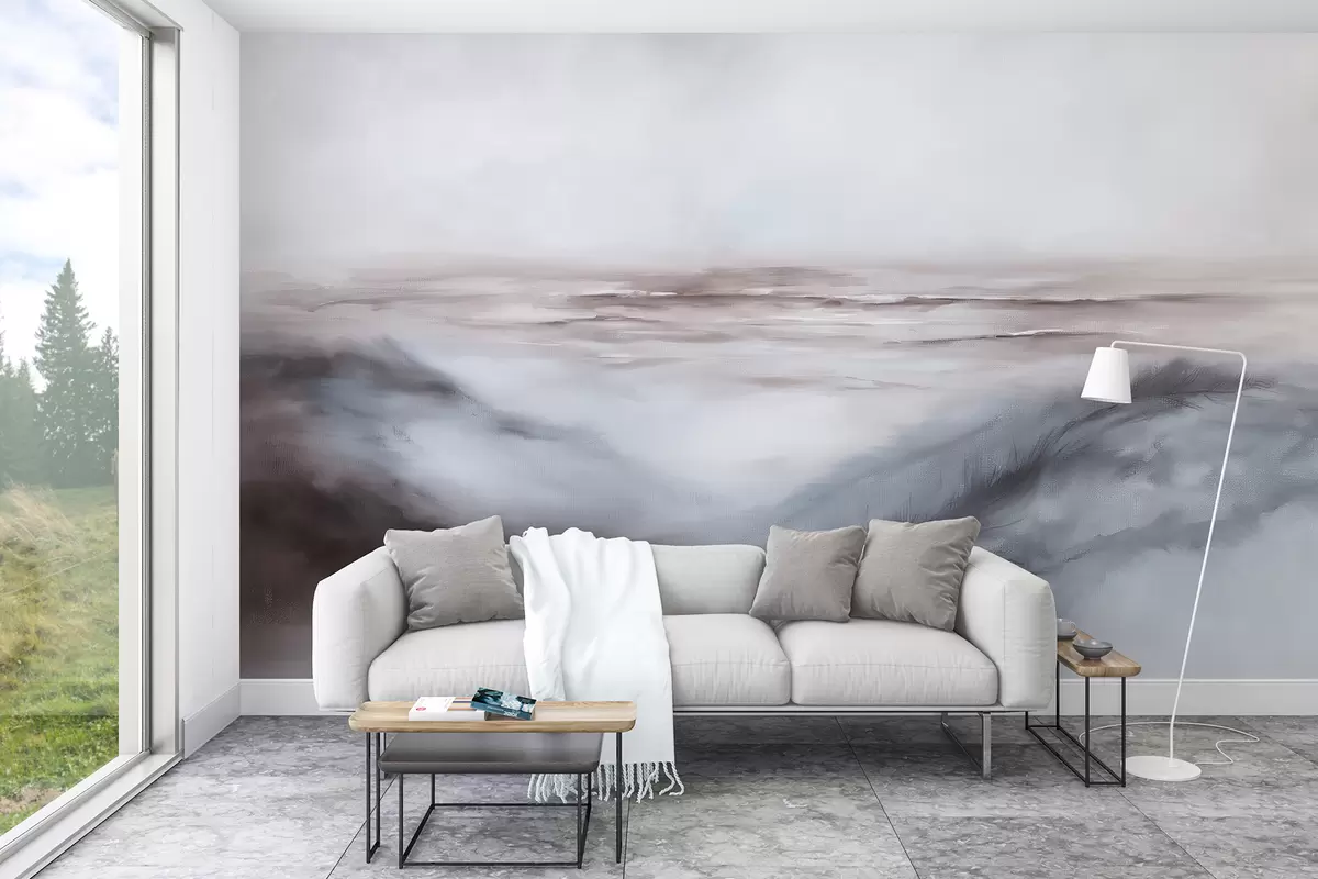 Wall murals Abstract lanscape in pastel colors, brush strokes, beach, sea, grey color pallete Nr. w08141