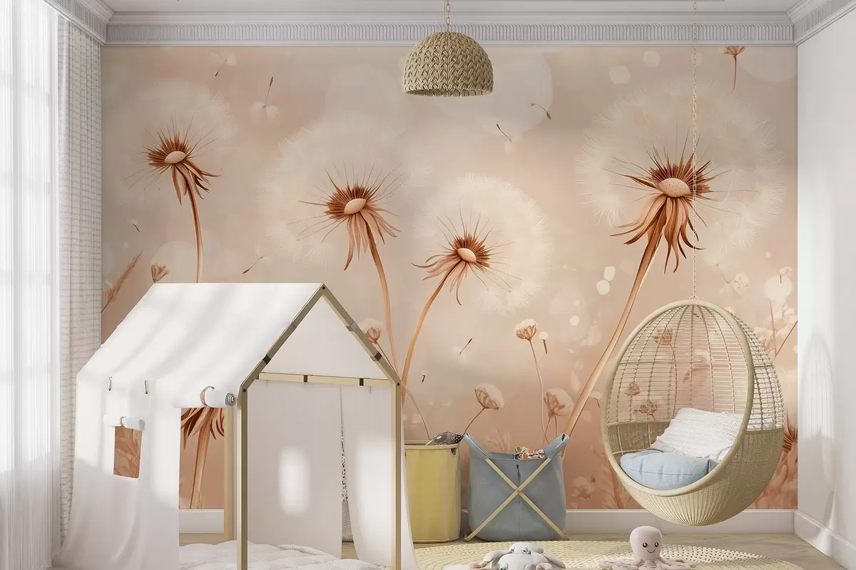 Wall murals Elegant dandelions and wildflowers in painting style in warm tones Nr. w08657
