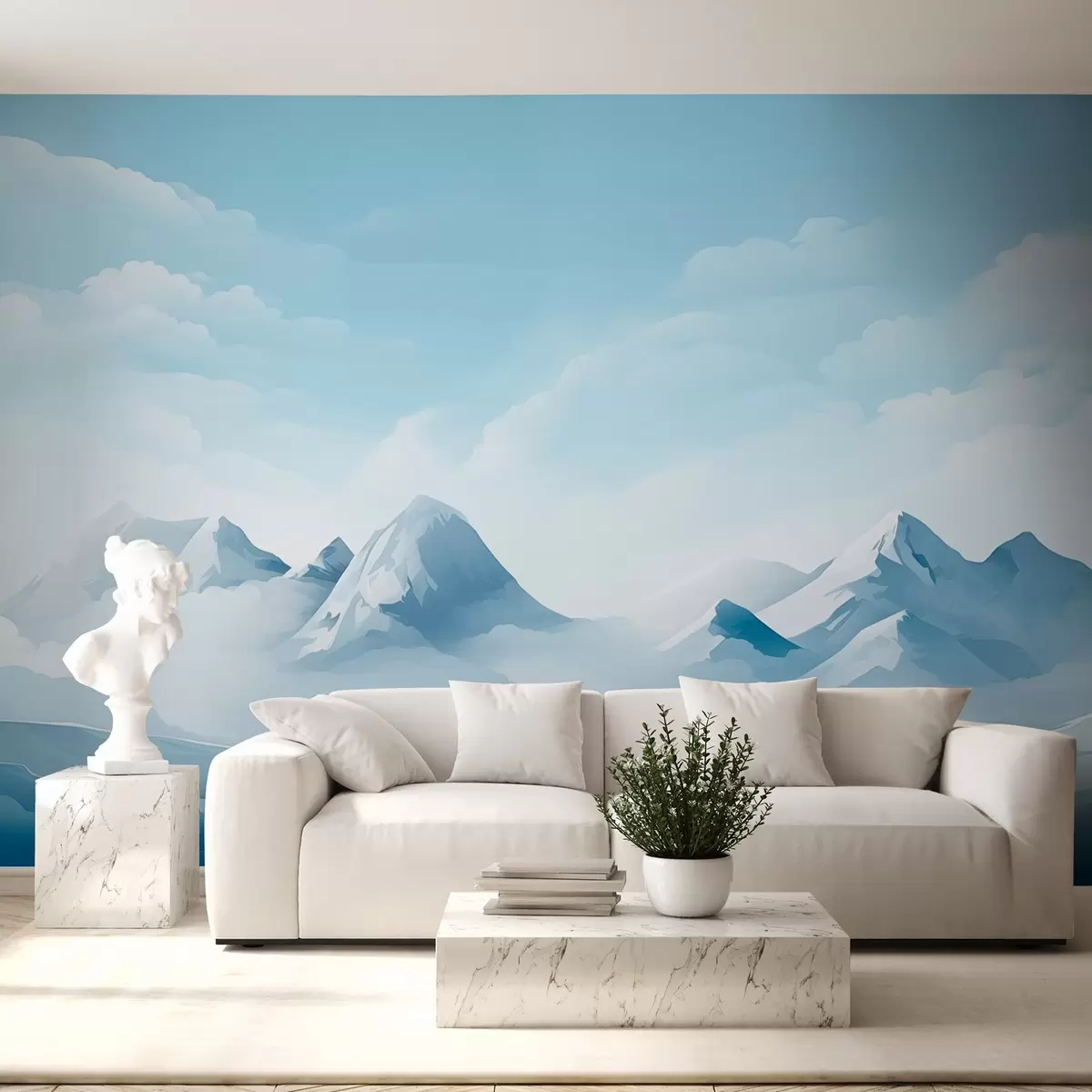 wall murals Minimalistic blue clouds and mountains, icy weather w08811