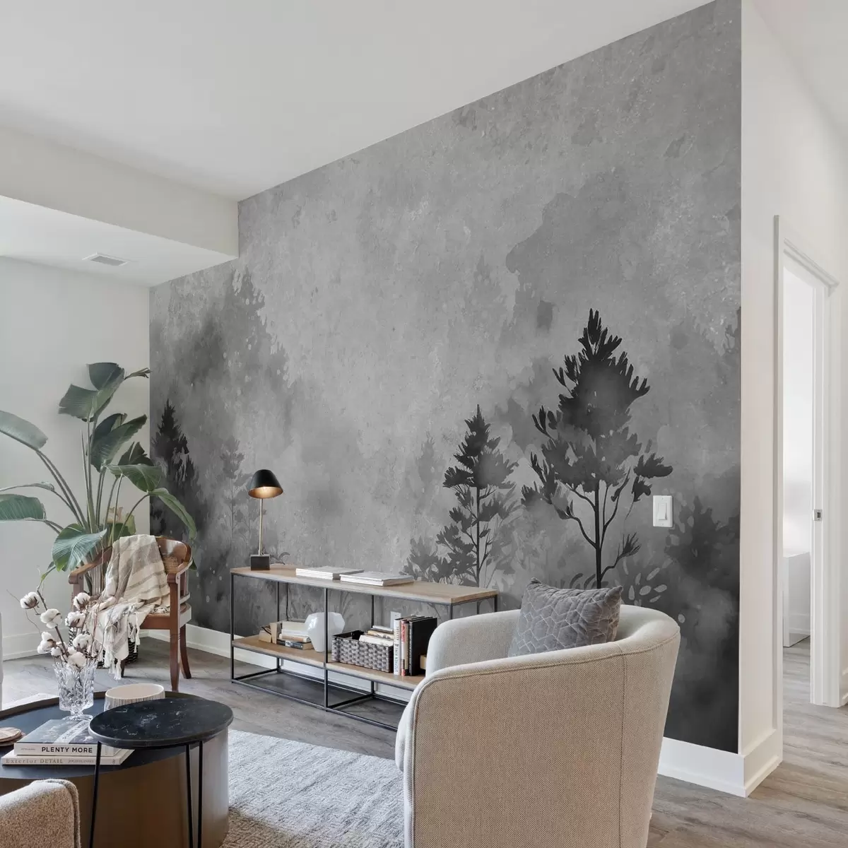 Wall murals Forest, imitation watercolor in black and white style Nr. w08862v1