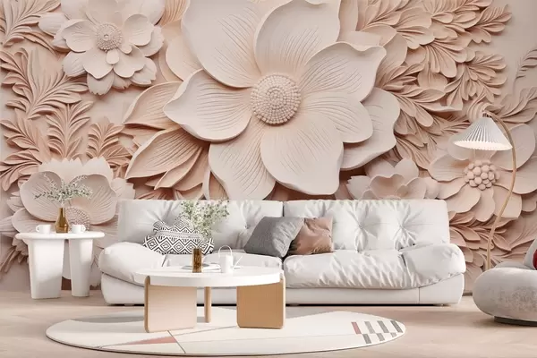 Wall murals Beige flowers and leaves with a relief effect Nr. w08933