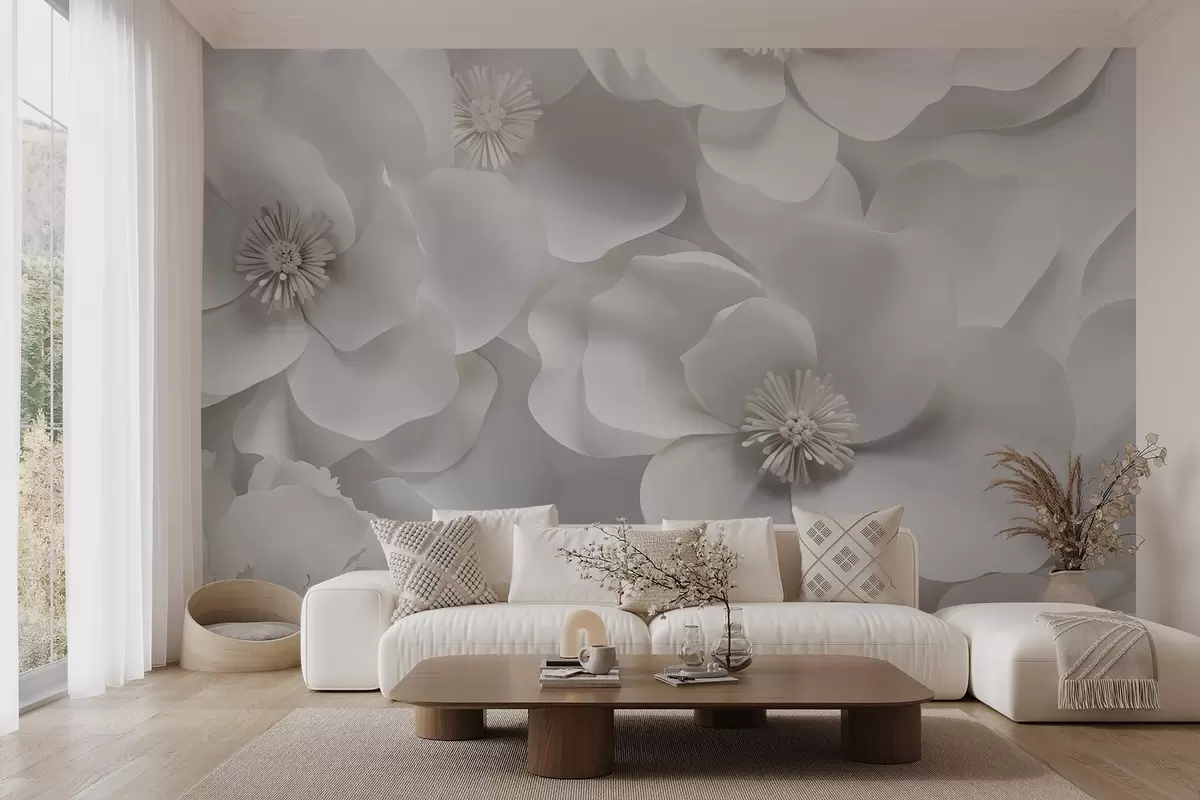 Wall murals White flowers with delicate petals, arranged in a dense cluster, creating a sense of purity and elegance on white background Nr. w09053