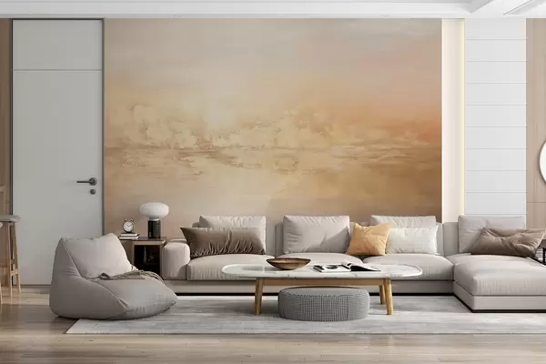 Wall murals Abstract textured landscape with warm colors, a soft and dreamy atmosphere, and a blend of orange, yellow, and white hues Nr. w09063