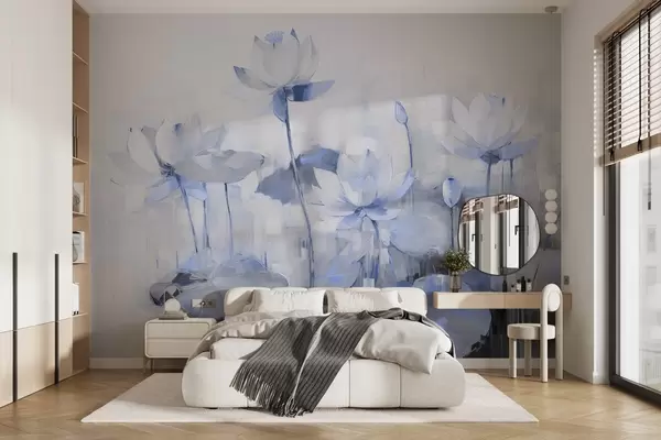 Wall murals Delicate lotus flowers painted with acrylic Nr. w09067v1