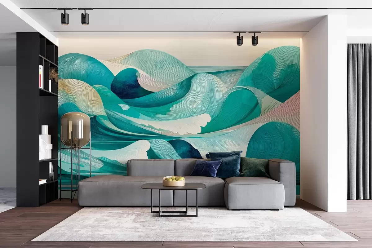 Wall murals Waves with lines in blue and turquoise colors Nr. w09078