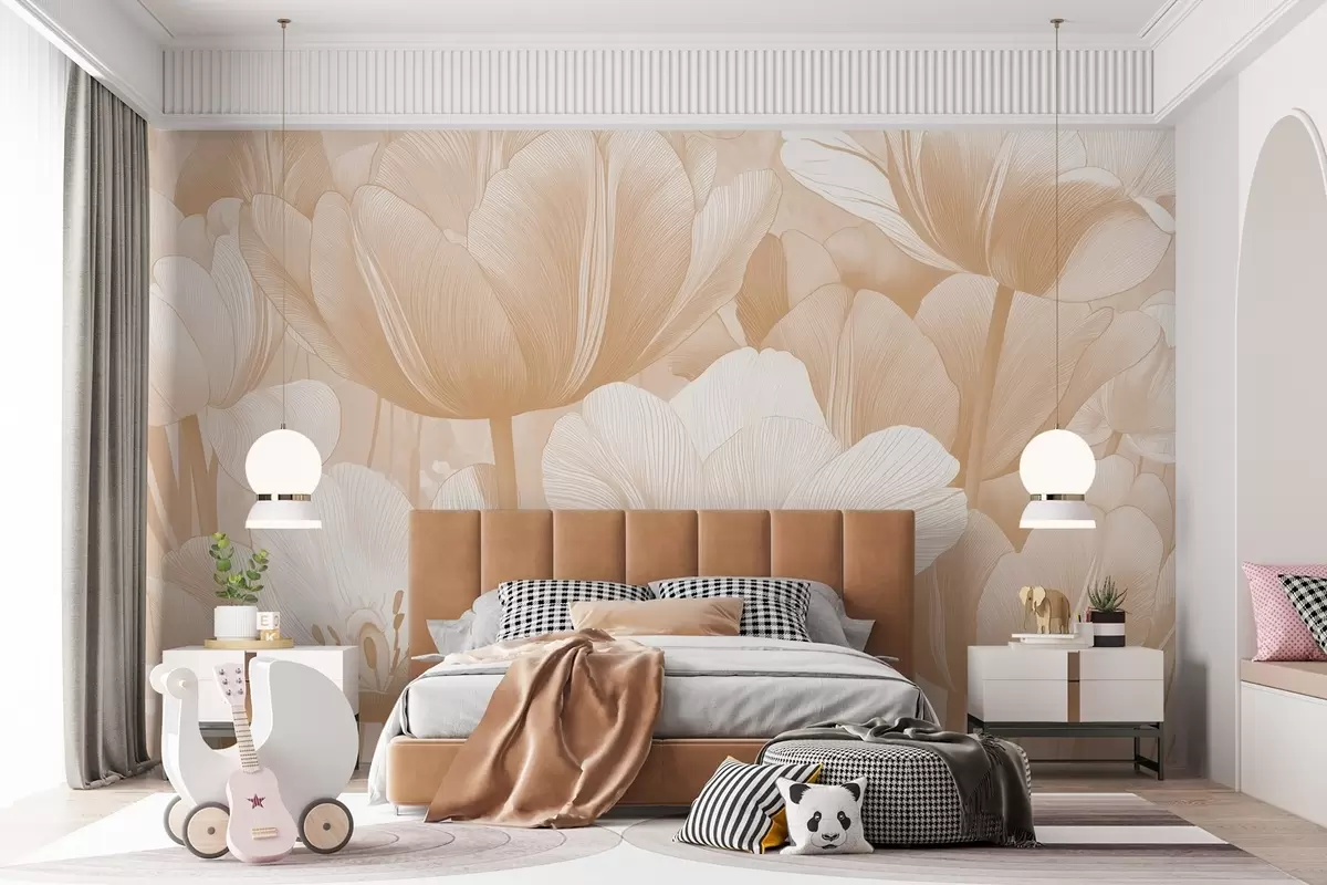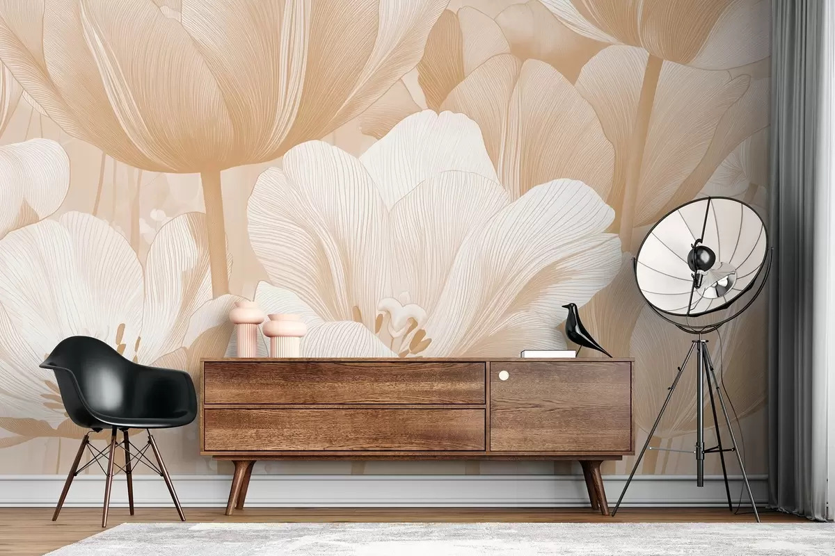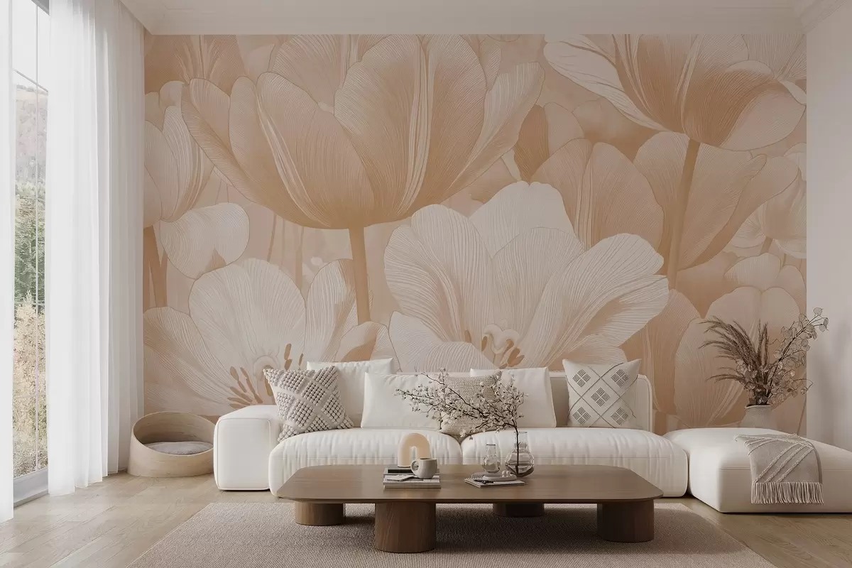 Wall murals Beige poppies in light tones Nr. w09099