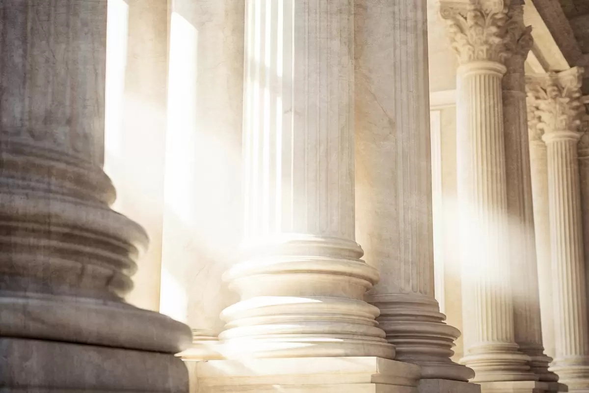 Wall murals Columns, classic architecture, elegant design, textured symmetrical composition, neutral color palette Nr. w09209