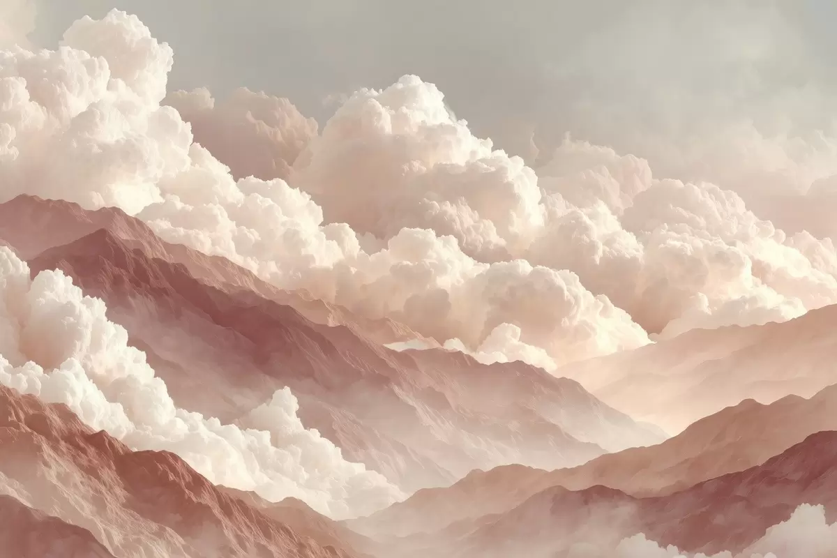 Wall murals Warm sunrise over mountains with fluffy clouds Nr. w09226
