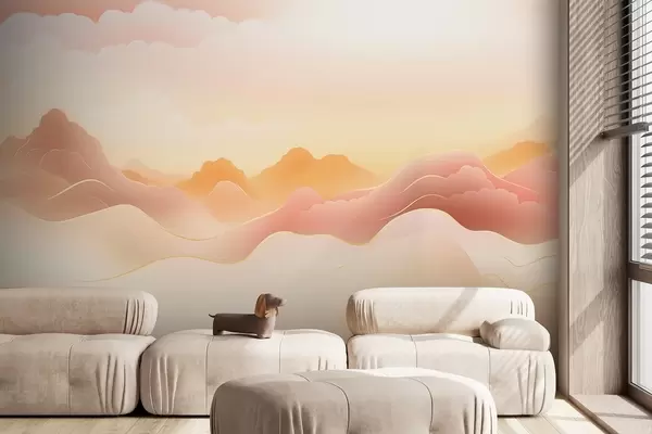 Wall murals Misty mountains under a warm sunrise Nr. w09242