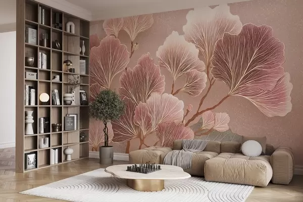 Wall murals Branch of leaves in pink and purple shades Nr. w09249