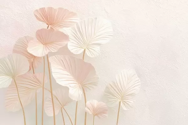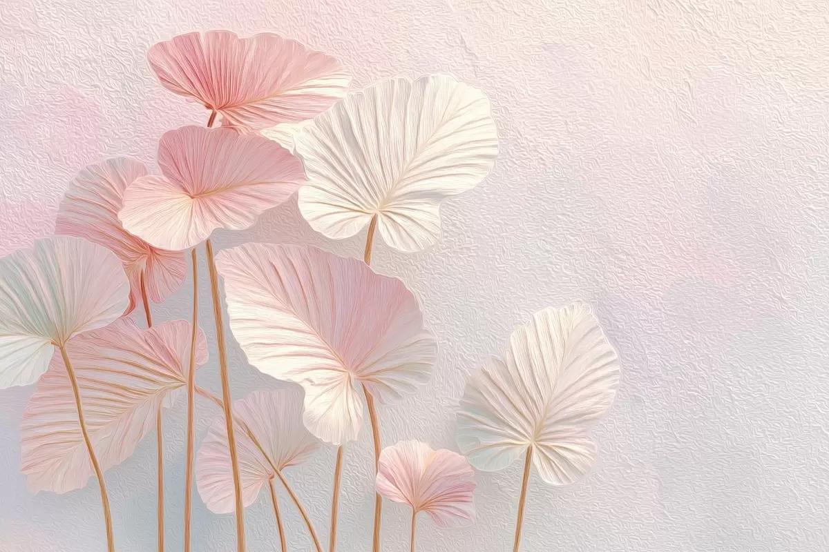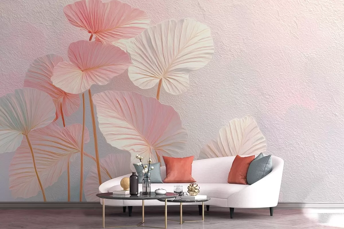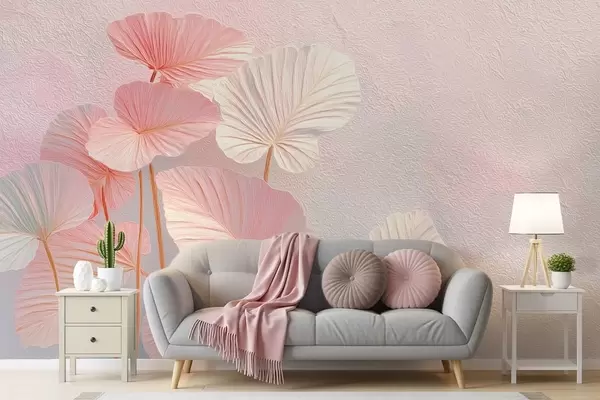 Wall murals Elegant large tropical leaves in soft pink and blue hues Nr. w09252