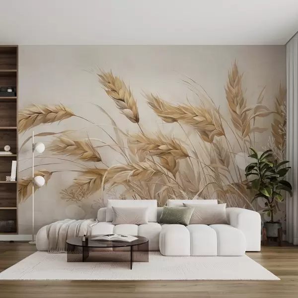 Wall murals Wheat textured field with beige ears of grain swaying in the wind, soft and muted colors, creating a sense of warmth Nr. w09264