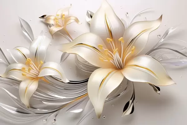 Wall murals Yellow lilies with 3D effect on a light background Nr. w09278
