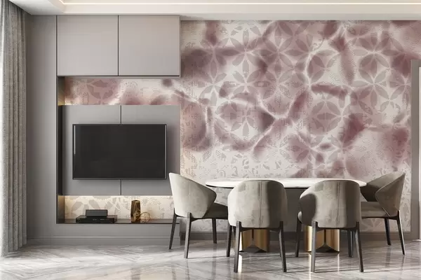 Wall murals Abstract textured art with bordo floral print, faded and blurred effect, creating a soft and dreamy atmosphere Nr. w09322v1