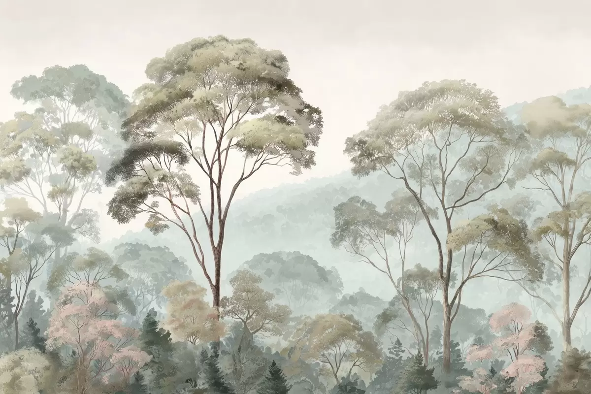 Wall murals Misty morning in the forest in watercolor style Nr. w09405
