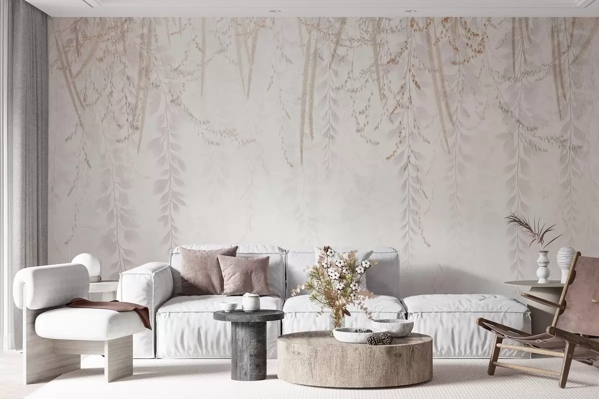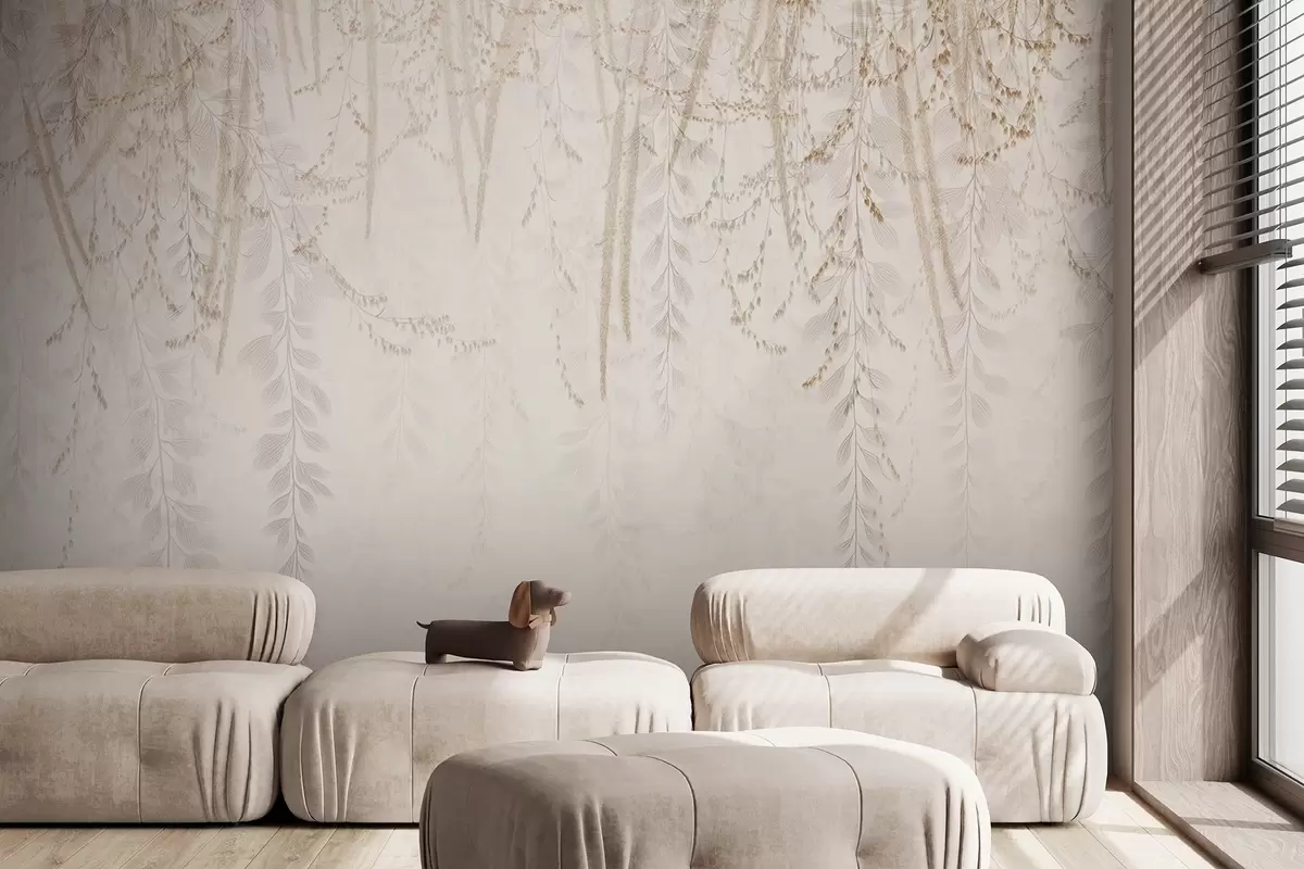 Wall murals Light hanging leaves and branches in beige tones Nr. w09433