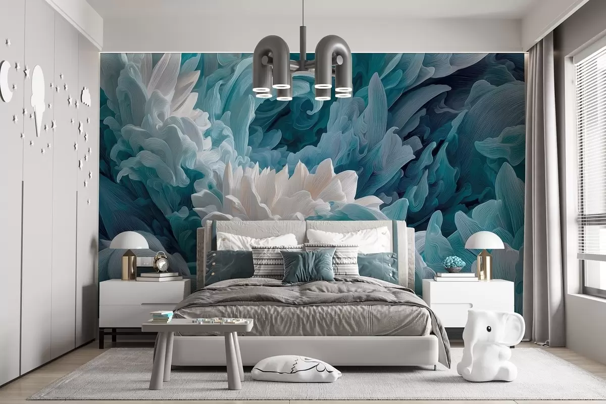 Wall murals Dance of petals and ocean waves in blue hues Nr. w09454
