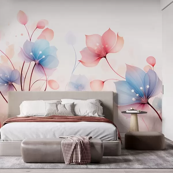 Wall murals Delicate pink-blue flowers — airy flora on a white watercolor background Nr. w09507