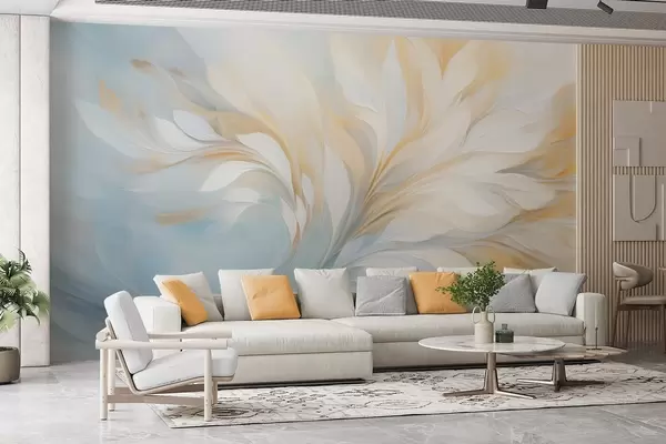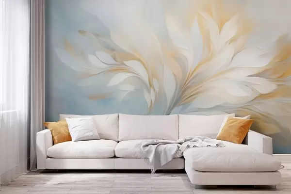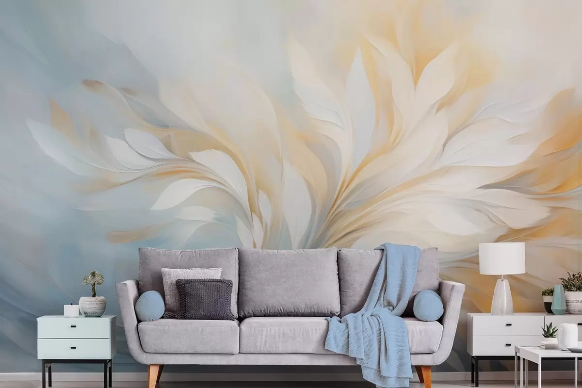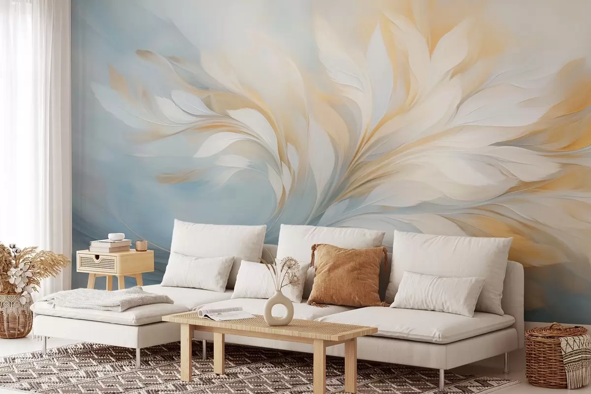 Wall murals Abstract composition of smooth feather-like forms in yellow and blue tones Nr. w09525