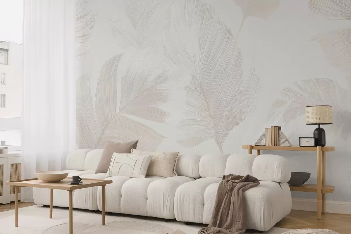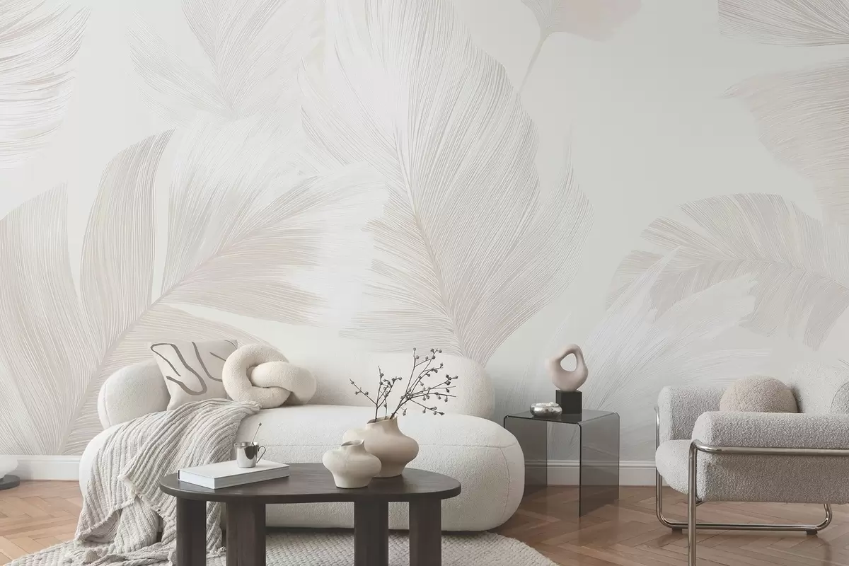 Wall murals Soft ivory feathers in milky beige tones Nr. w09563
