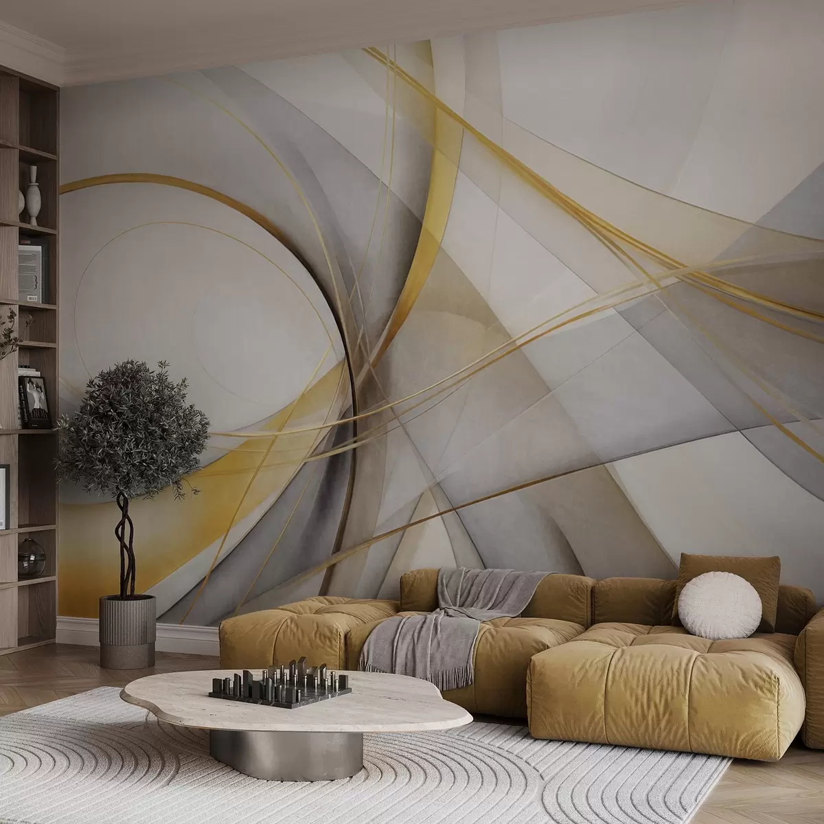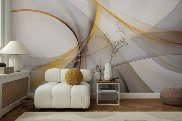 Wall murals Abstract flowing lines in yellow and white on a gray background, with a sense of movement and depth, modern art Nr. w09587