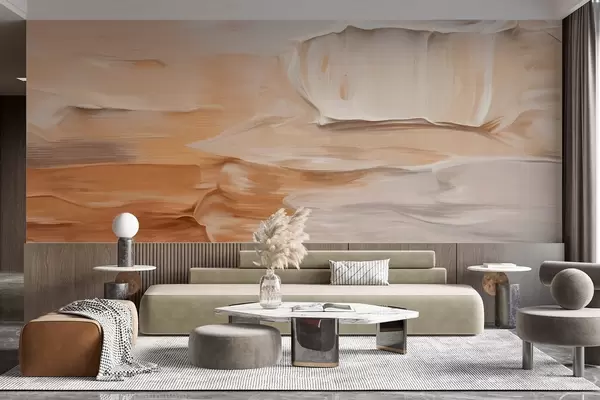 Wall murals Abstract textured brushstrokes imitation in warm earthy tones of beige, cream and brown, modern art Nr. w09588