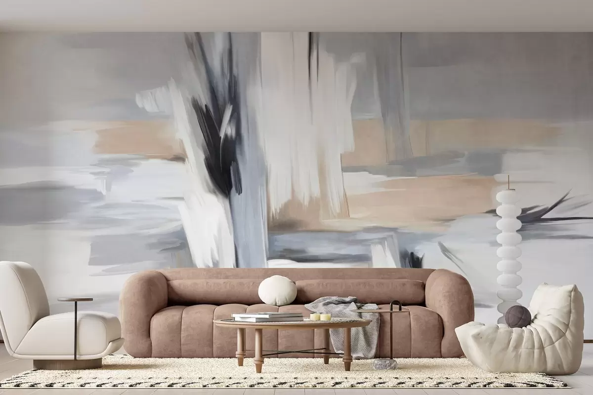 Wall murals Abstract textured painting style with brushstrokes in shades of white, gray and beige Nr. w09651