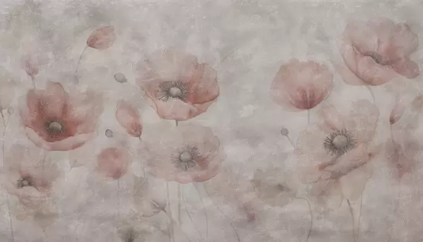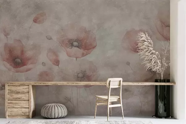 Wall murals Large poppy flowers on a wall with an antique effect Nr. w09686
