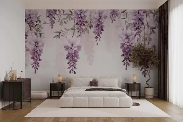 Wall murals Delicate, large lavender branches hanging on the wall, imitation watercolor Nr. w09690