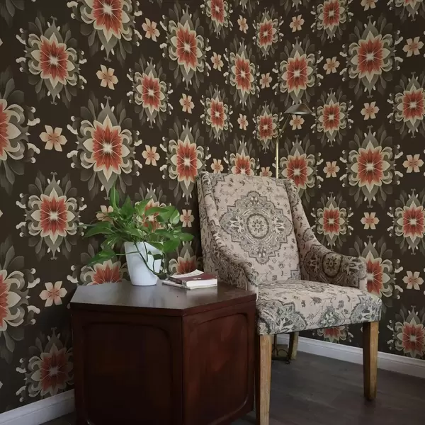 Wallpaper Abstract floral pattern on dark background a00069
