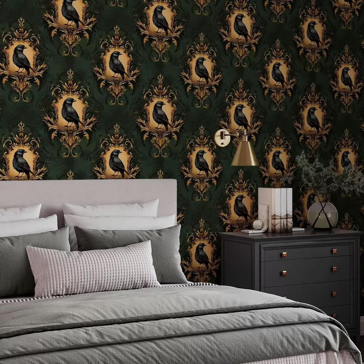 Wallpapers Crow in a frame on a green background Nr. a00105