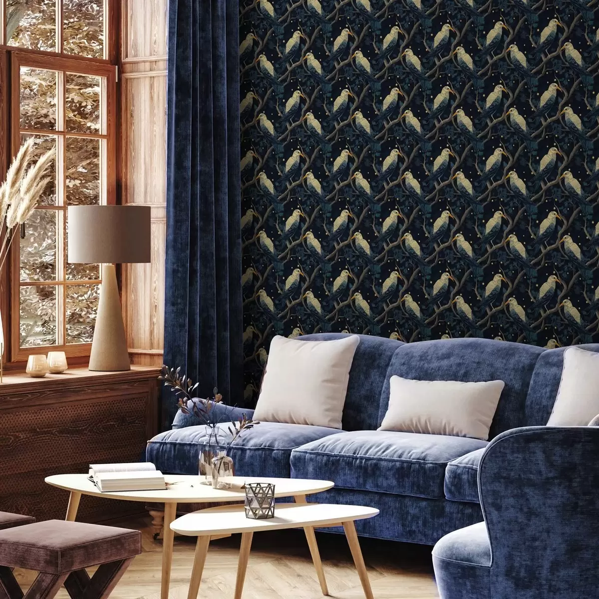 Wallpapers Night birds on branches and stars on a dark blue background Nr. a00109v1