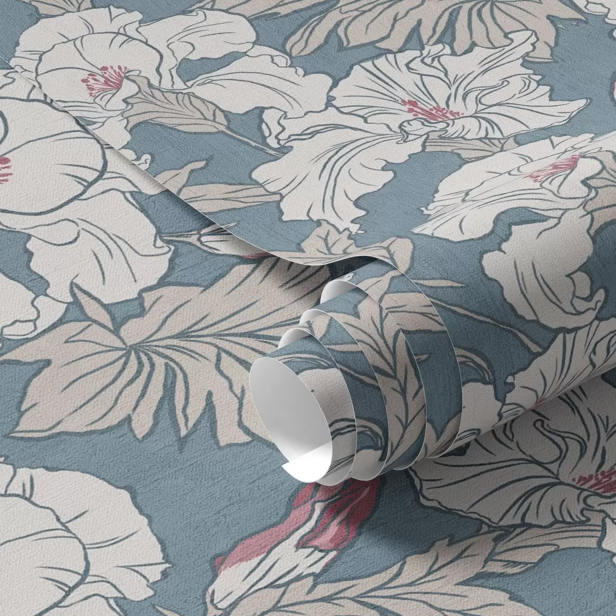 Wallpapers White hibiscus on blue background with contour pattern Nr. a00272v1