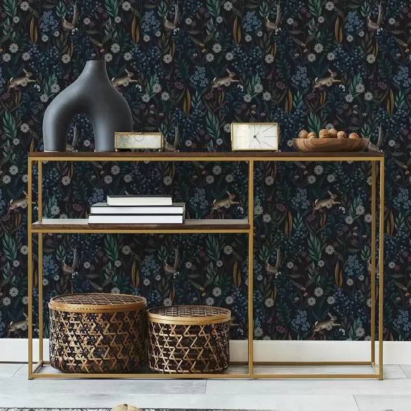 Wallpaper Dark forest with flowers, hare and a bird a00310