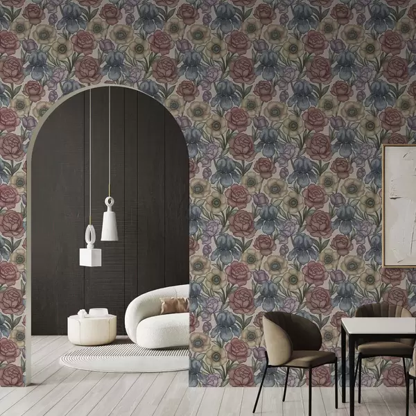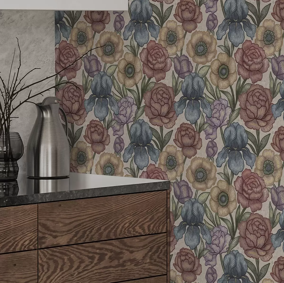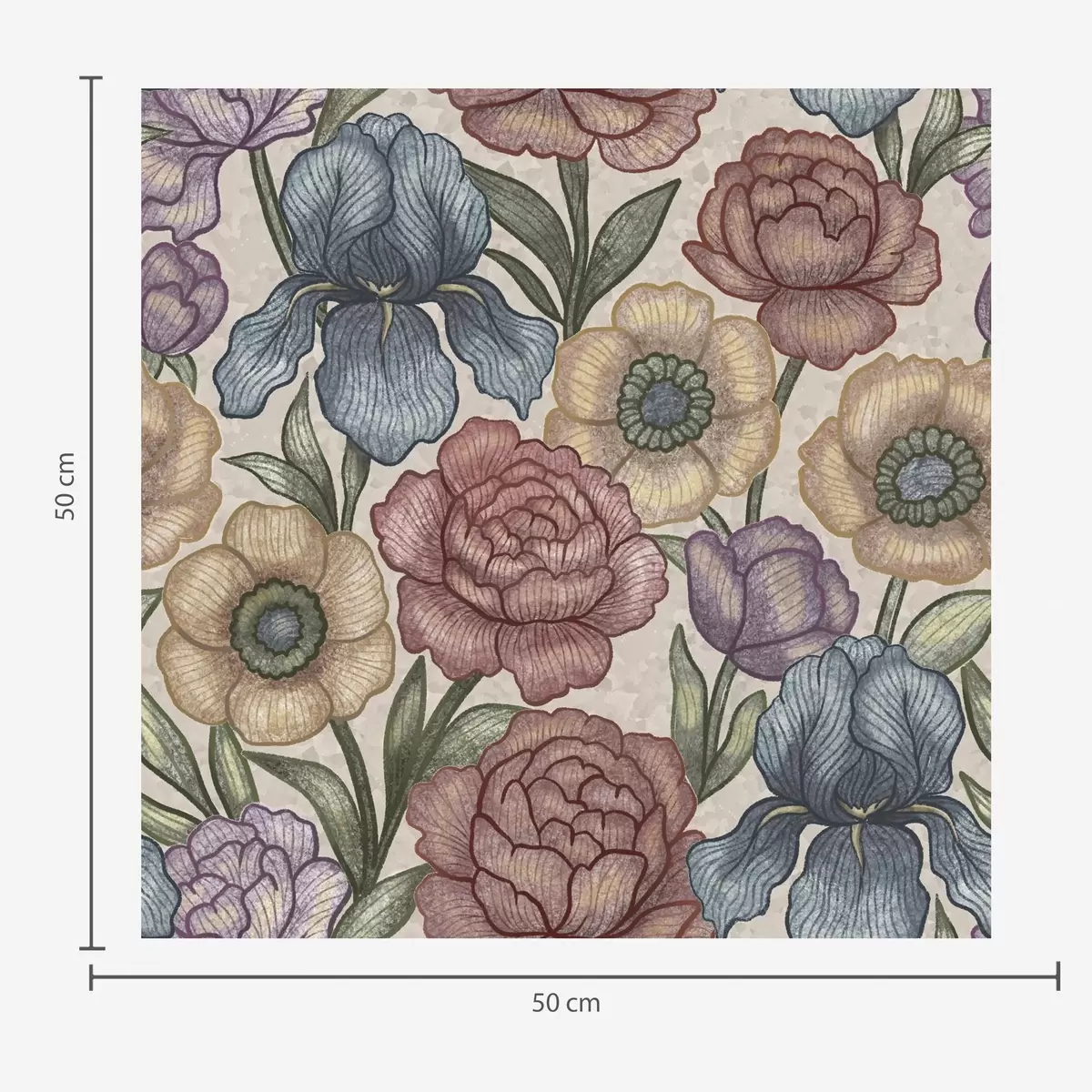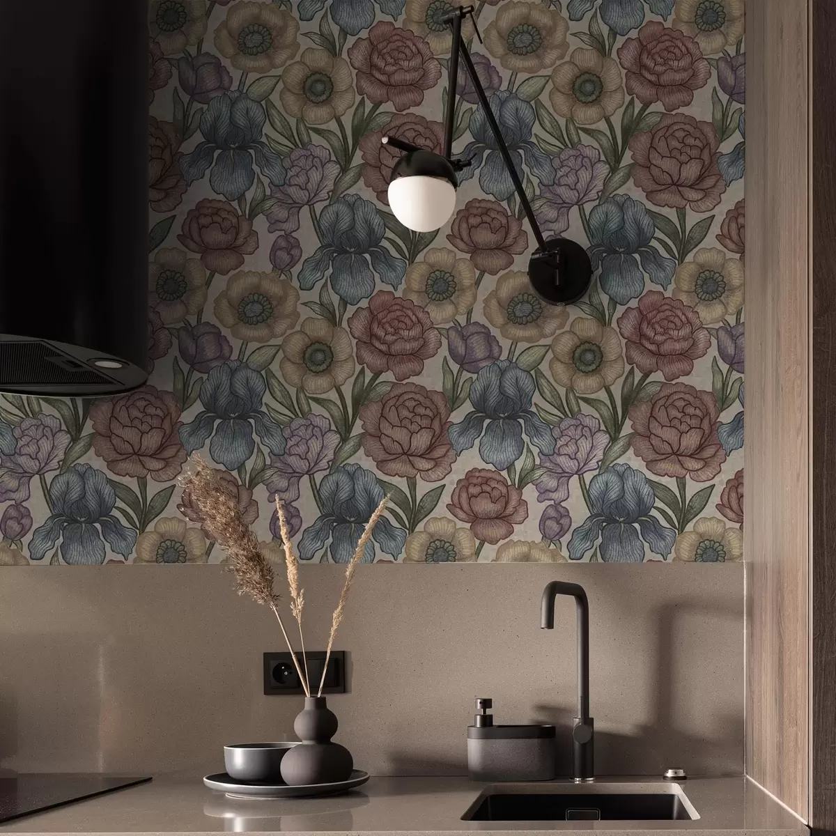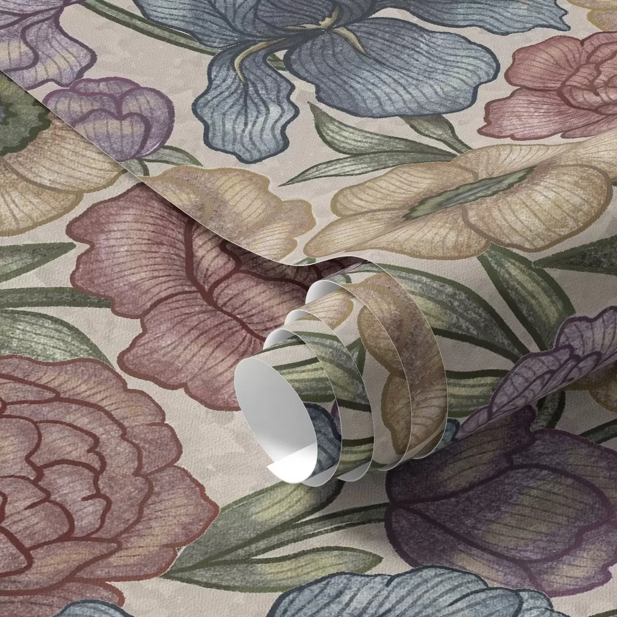 Wallpapers Large floral illustrations with irises and peonies Nr. a00325
