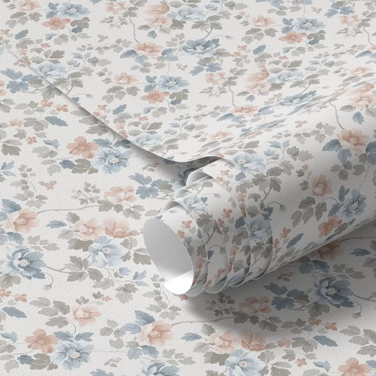 Wallpapers Small floral ornament in blue and coral tones Nr. a00347