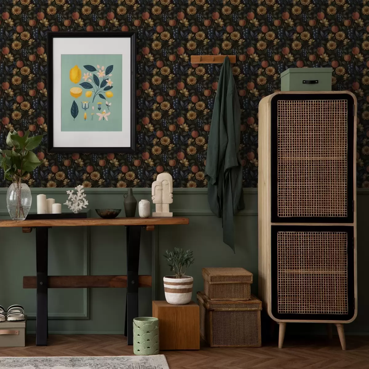 Wallpapers Fruits and yellow flowers on dark botanical background Nr. a00395