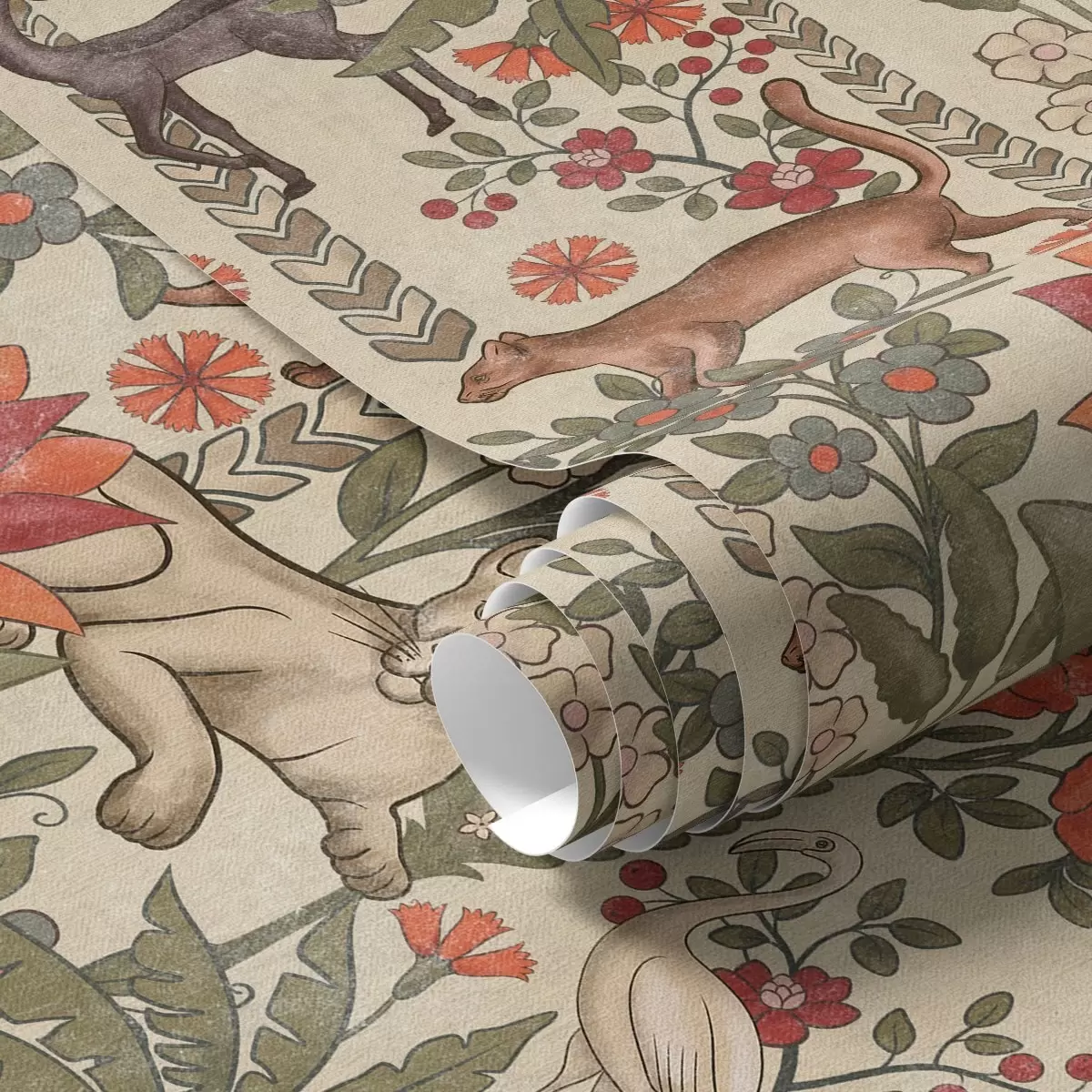 Wallpapers Retro style: Animals and flowers on a vintage background Nr. a00431