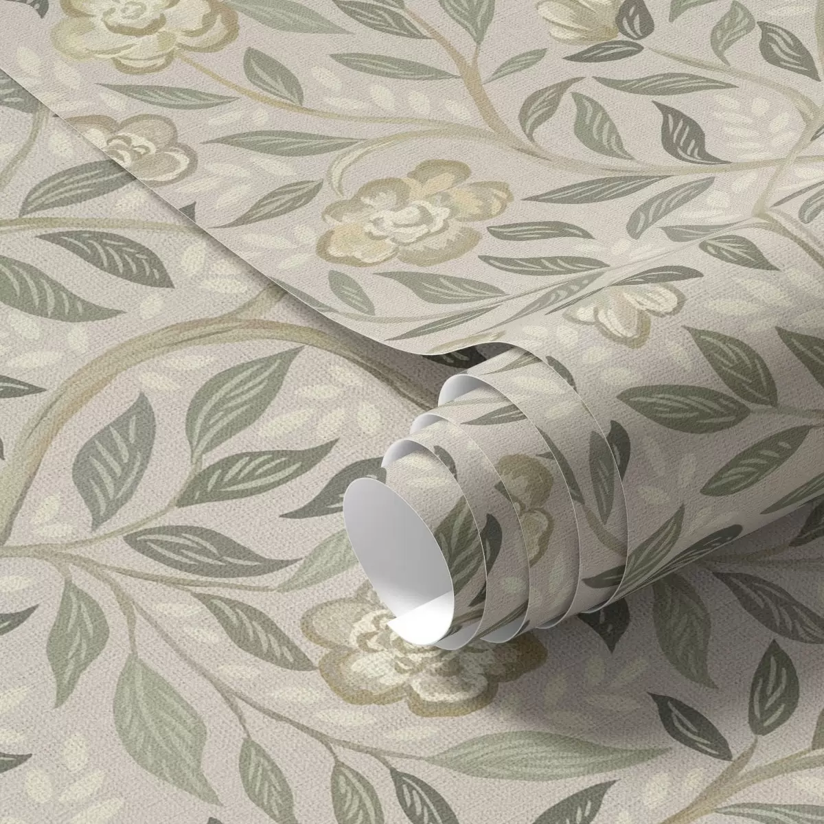 Wallpapers Cream roses and olive leaves on dusty pink background Nr. a00455