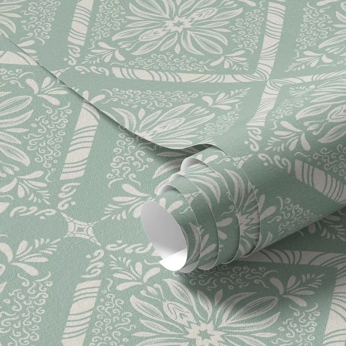 Wallpapers Turquoise and beige geometric pattern with curls Nr. a00466