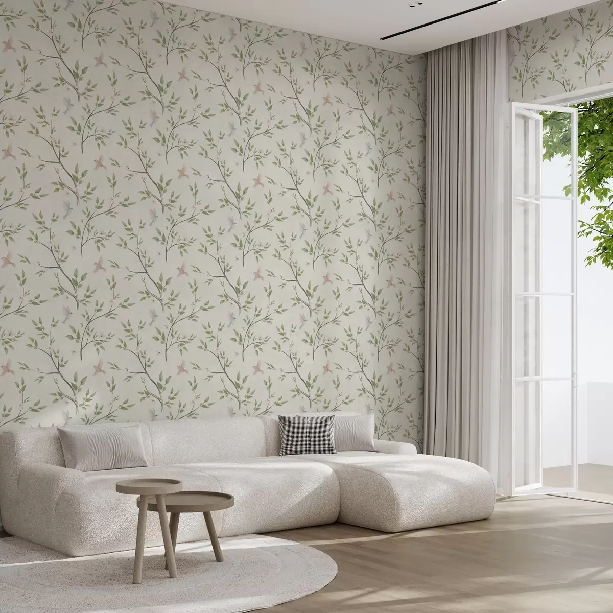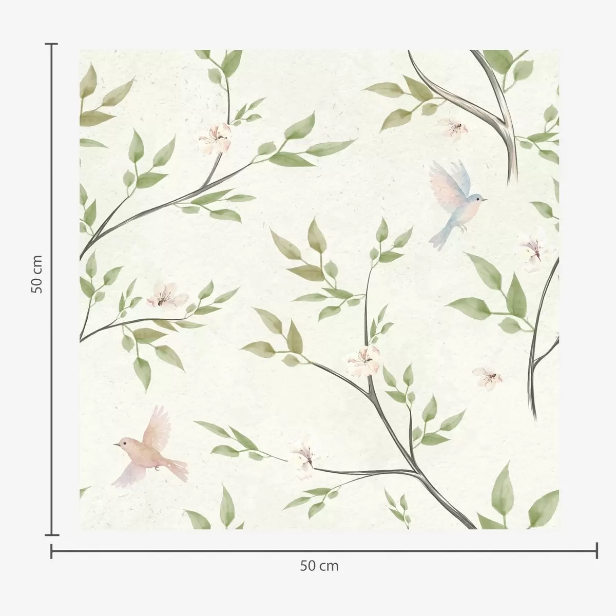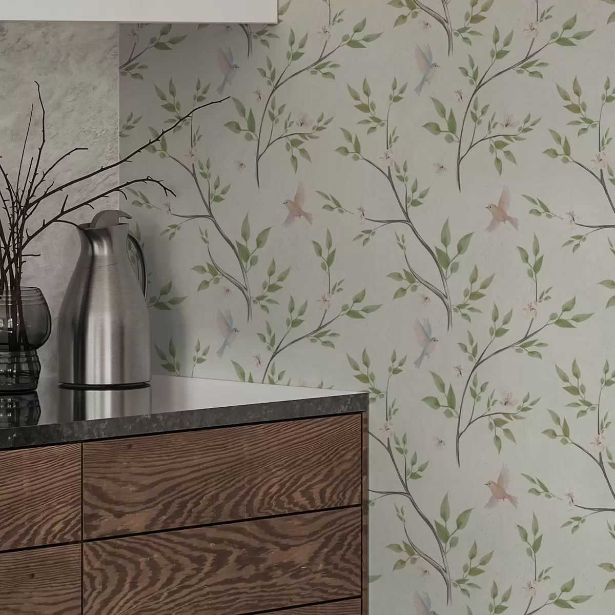 Wallpapers Watercolor branches with leaves and birds on a light ground Nr. a00496