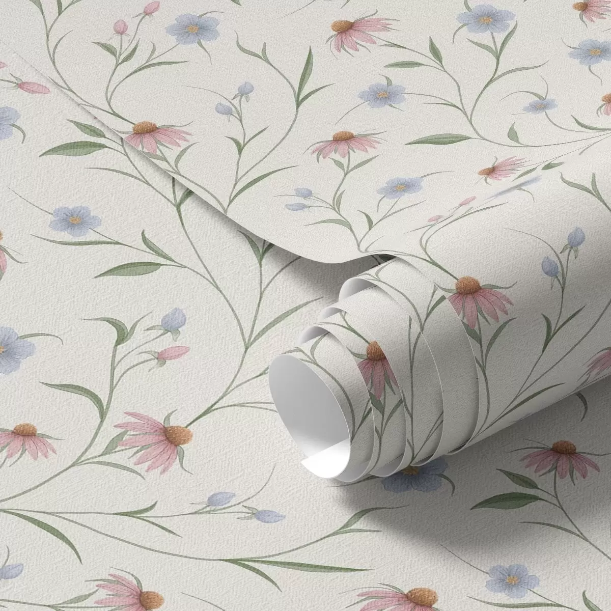 Wallpapers Field daisies and echinacea on a cream background, lightness Nr. a00614