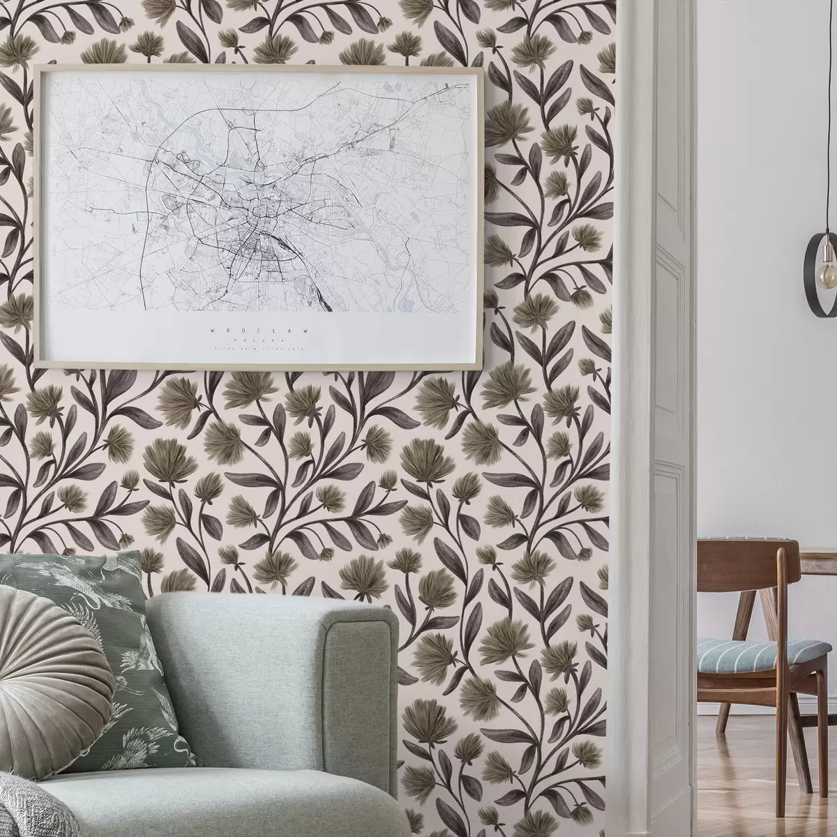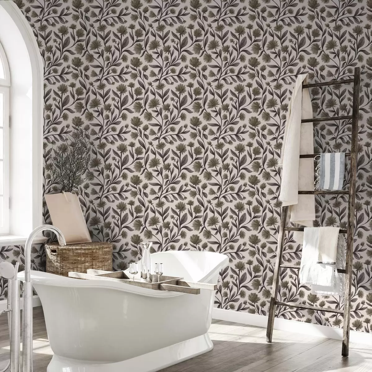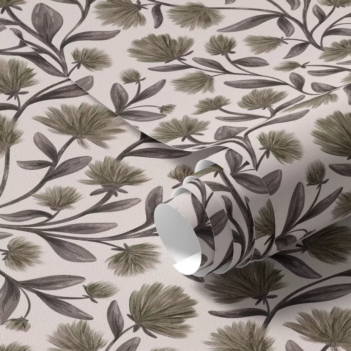 Wallpapers Wildflowers in gray-olive tones on a cream background Nr. a00623v1