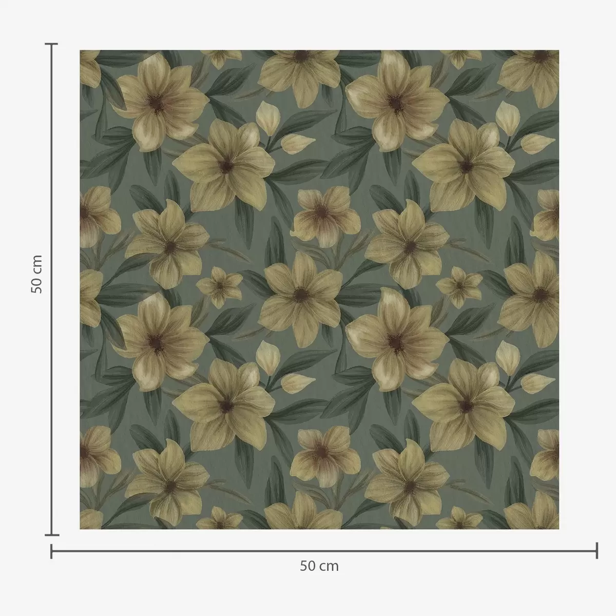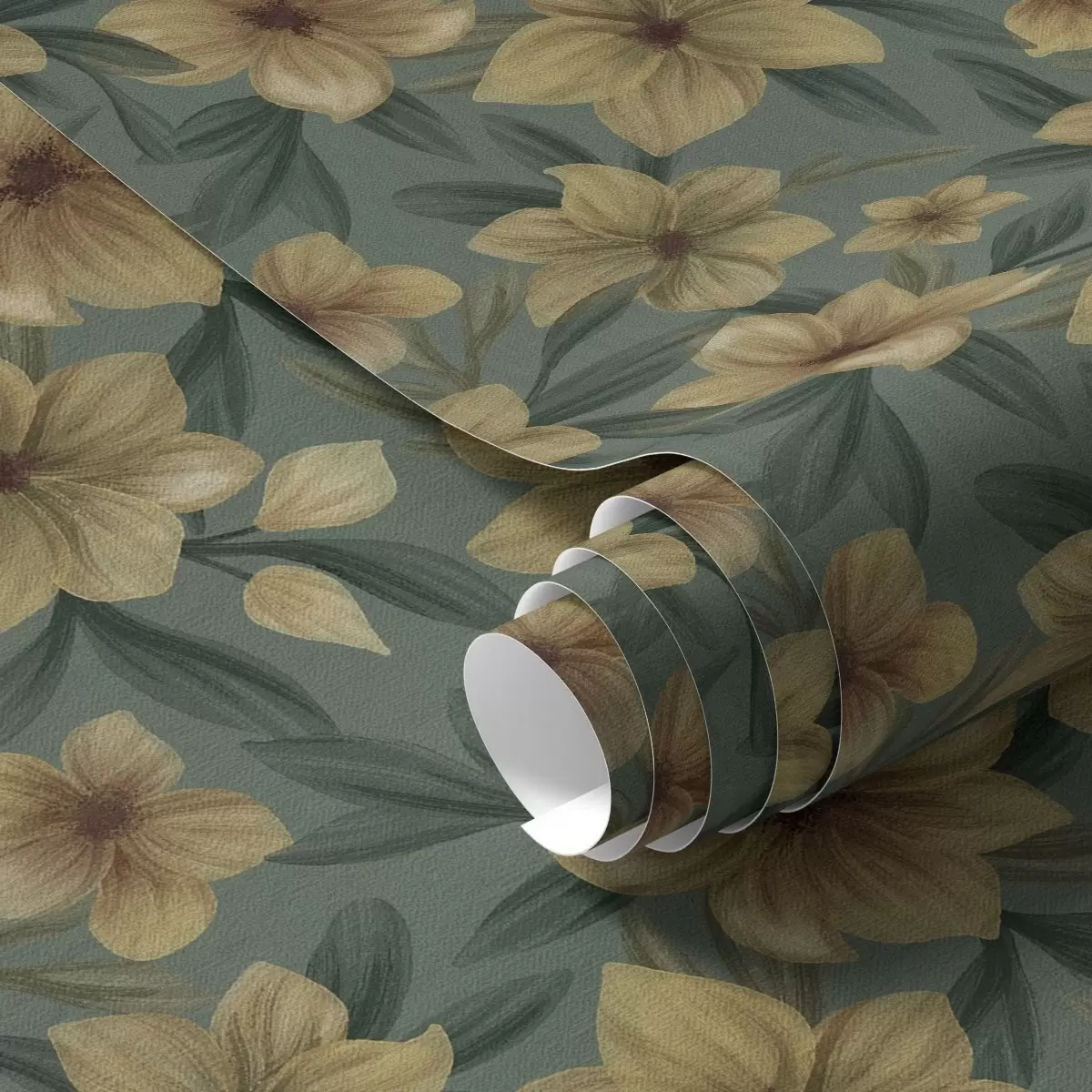 Wallpaper Ochre flowers on a deep green background, dense pattern a00628