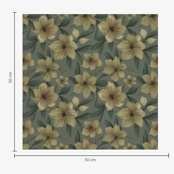 Wallpapers Ochre flowers on a deep green background, dense pattern Nr. a00628