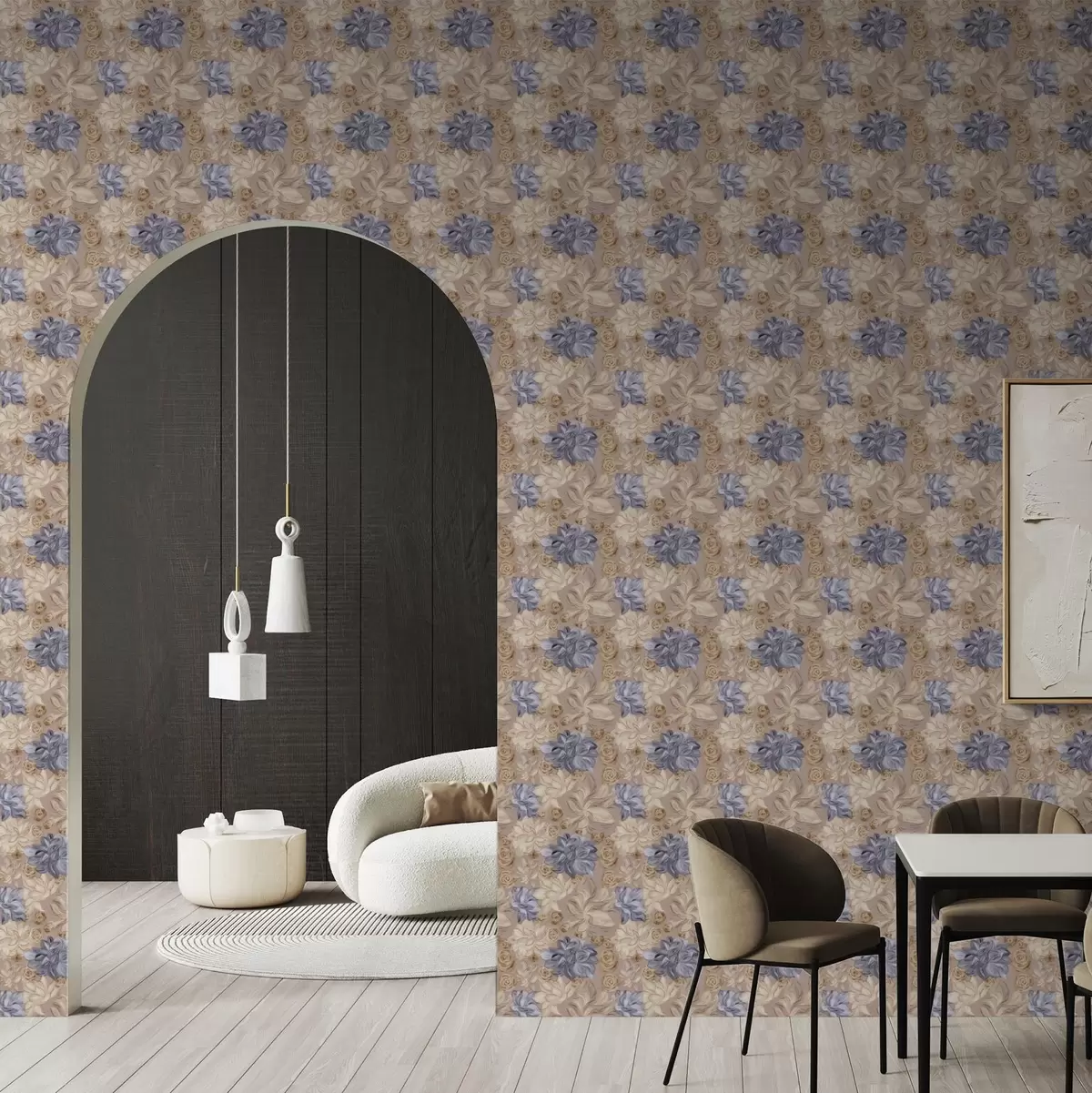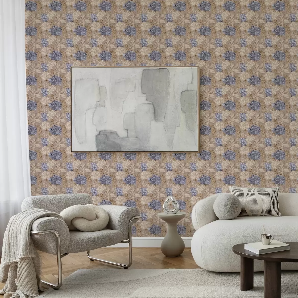 Wallpapers Lush cream and blue flowers in a pastel palette Nr. a00634