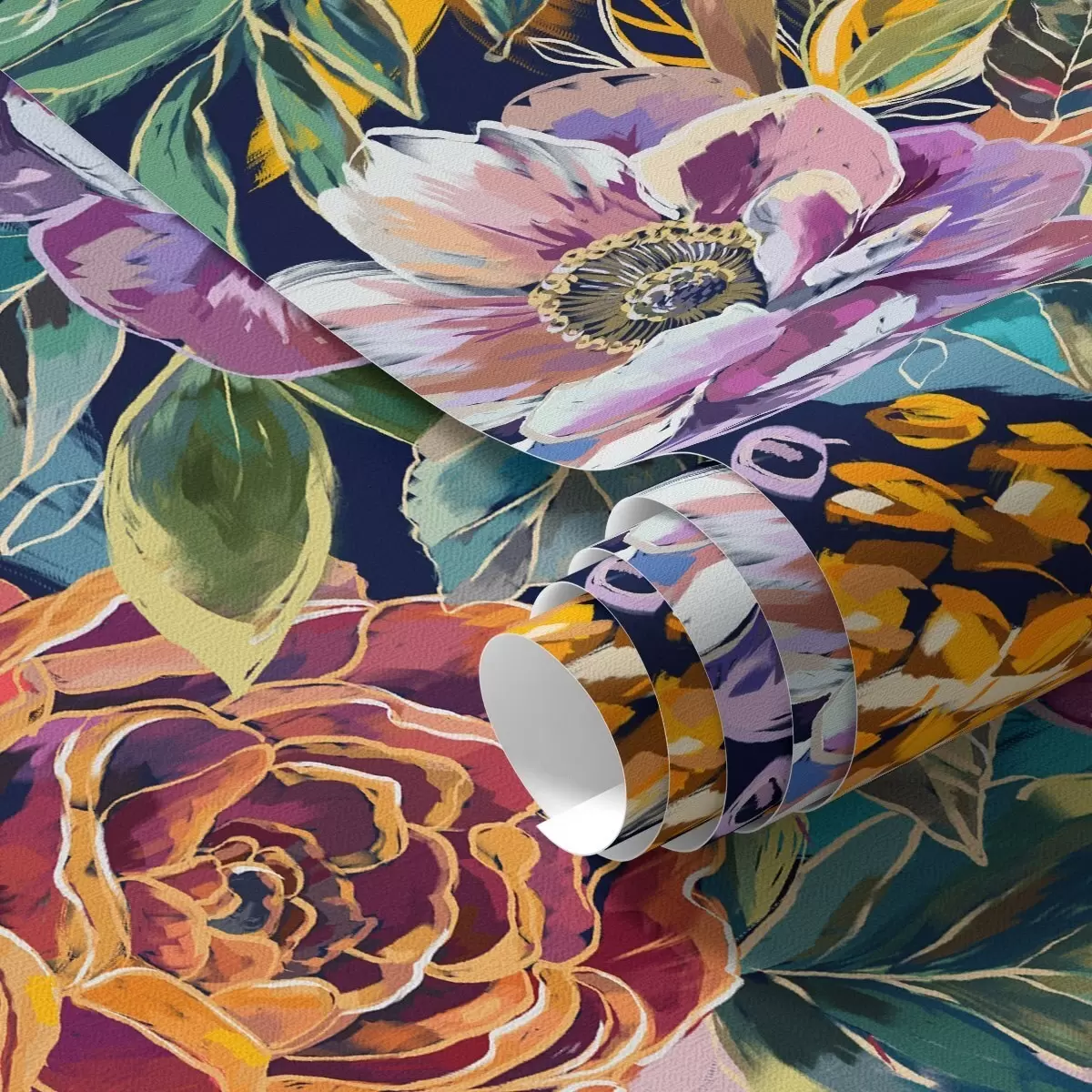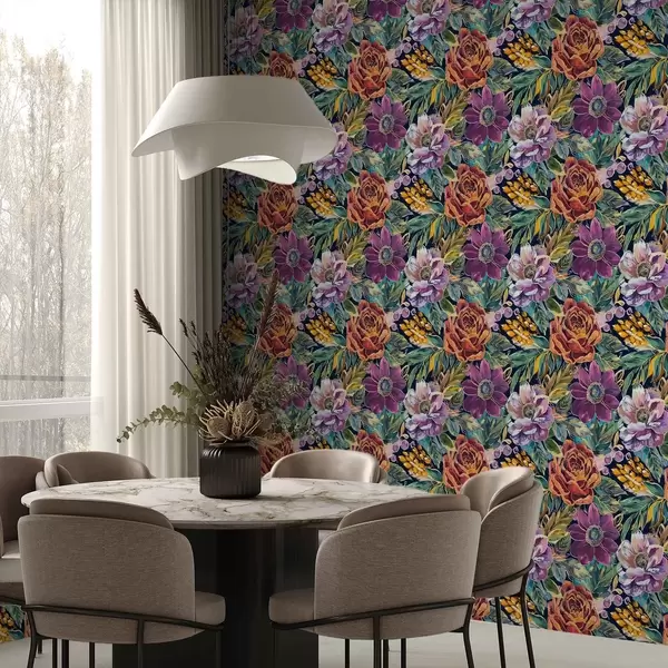 Wallpapers Bold large brush-painted flowers on a dark blue background Nr. a00643