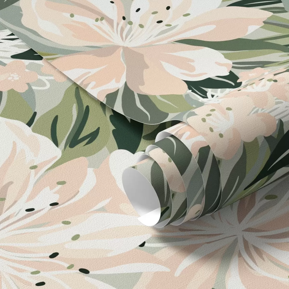 Wallpapers Large cream flowers on a light green background Nr. a00646