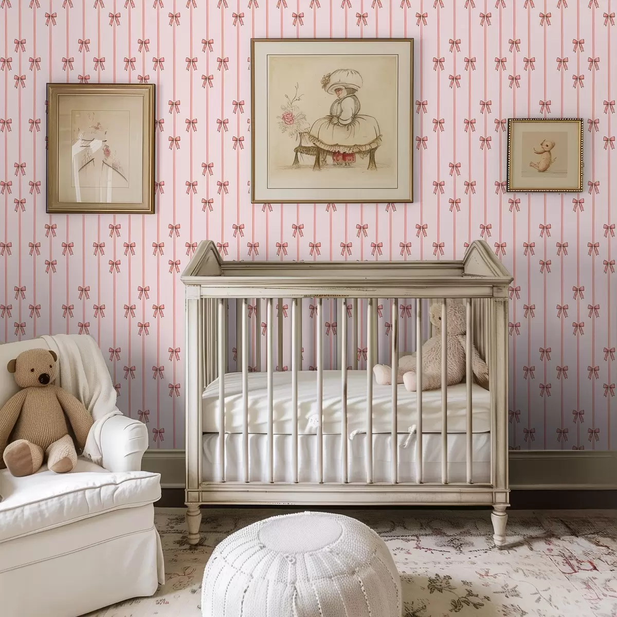 Wallpapers Vertical ribbons with bows, powder pink background Nr. a00653v2