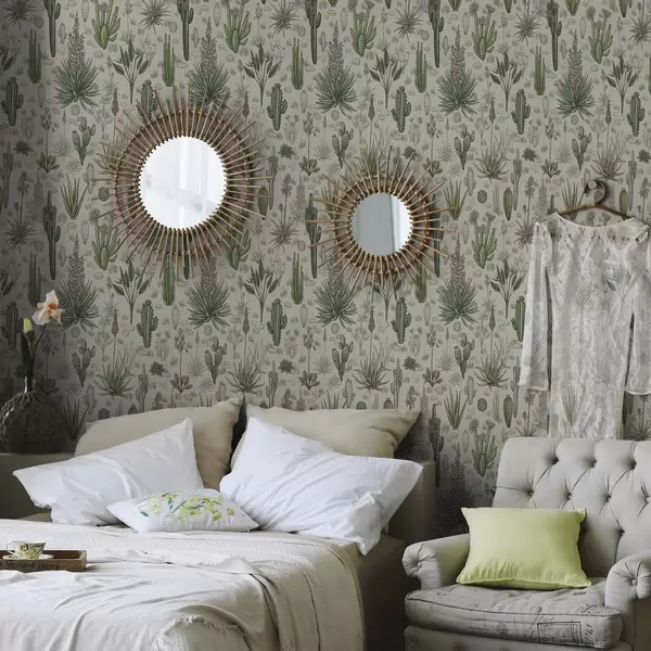 Wallpapers Cacti and succulents on a warm background, detailed print Nr. a00666